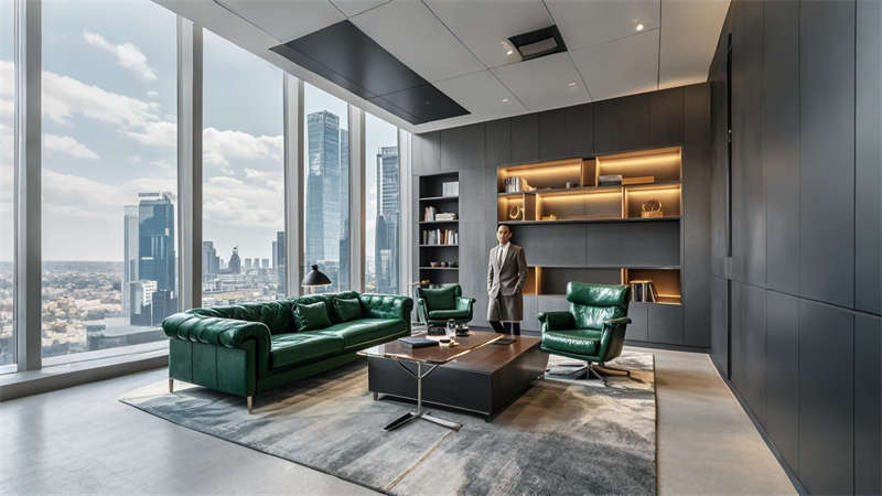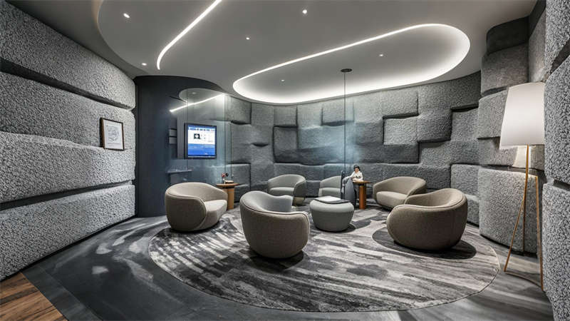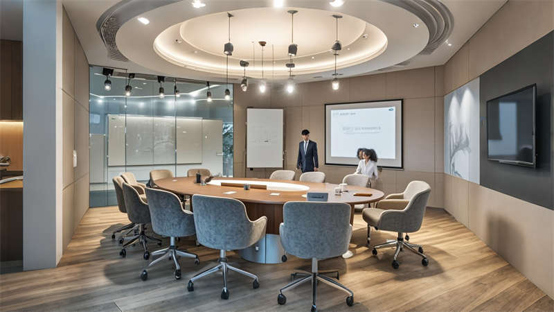 照明設(shè)計(jì)采用 3000K-4000K 色溫分區(qū)控制,重點(diǎn)區(qū)域設(shè)置磁吸軌道燈滿足展陳需求。聲學(xué)處理方面,關(guān)鍵會議室采用雙層中空玻璃與吸音毛氈墻面,確保 45 分貝以下靜音標(biāo)準(zhǔn)。全案貫徹 LEED 認(rèn)證標(biāo)準(zhǔn),90% 建材達(dá)到環(huán)?;厥找?,實(shí)現(xiàn)美學(xué)價值與實(shí)用功能的有機(jī)統(tǒng)一。