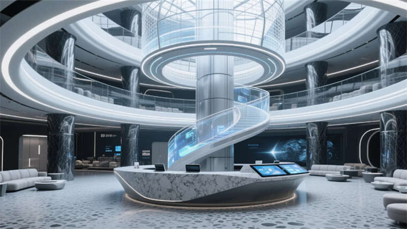 厘米級(jí)定位系統(tǒng)織就空間的數(shù)字神經(jīng)網(wǎng)絡(luò),實(shí)時(shí)感知行為軌跡的熱力圖譜。增強(qiáng)現(xiàn)實(shí)技術(shù)將虛擬協(xié)作層注入物理環(huán)境,會(huì)議紀(jì)要懸浮于白墻上空,項(xiàng)目進(jìn)度可視化流淌在地面光帶中。智能環(huán)境控制系統(tǒng)如同無形的指揮家,根據(jù)溝通場(chǎng)景自動(dòng)調(diào)節(jié)光域范圍與氣流速度,讓空間氛圍隨對(duì)話內(nèi)容自然脈動(dòng)。當(dāng)數(shù)字邏輯與建筑肌理深度融合,辦公室便升維為承載集體智慧的生命體。