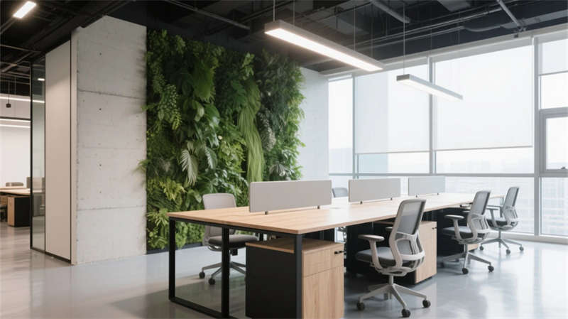 該空間以"自然共生"為脈絡(luò),將輕工業(yè)基因與生態(tài)美學(xué)深度融合。裸露結(jié)構(gòu)的天花與溫潤(rùn)木元素形成張力,貫穿各區(qū)域的垂直綠植墻如同呼吸脈絡(luò),賦予嚴(yán)謹(jǐn)辦公場(chǎng)景盎然生機(jī)。