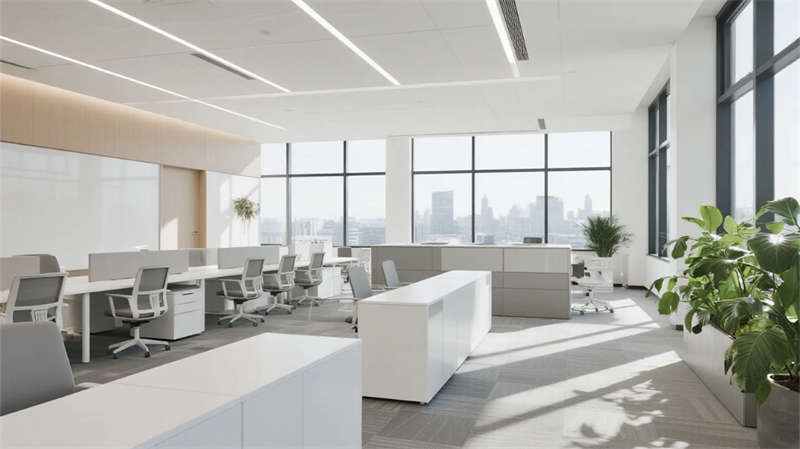 這座辦公空間設(shè)計以現(xiàn)代簡約風格為核心,通過統(tǒng)一的美學語言打造出和諧而高效的空間體驗。整體采用中性色調(diào)和簡潔線條,強調(diào)自然光的最大化利用,營造出明亮通透的氛圍。功能區(qū)布局注重流暢性,從接待區(qū)的開放迎賓到開放式辦公區(qū)的協(xié)作精神,再到會議室的專業(yè)嚴謹,每個空間都融入了綠植點綴,增添生機感。休閑休息區(qū)提供舒適放松的角落,獨立辦公室則平衡了隱私與專注,茶水間和衛(wèi)生間延續(xù)了簡約實用的設(shè)計原則,多功能室支持靈活多變的活動需求。設(shè)計亮點在于對生態(tài)元素的融合,如大量綠植和自然光,提升了環(huán)境品質(zhì),同時現(xiàn)代家具和材質(zhì)選擇強化了簡約美學,確保功能與美感的統(tǒng)一。該項目體現(xiàn)了對辦公環(huán)境的革新思考,致力于創(chuàng)造一個既高效又宜居的空間,成為城市辦公新標桿。
