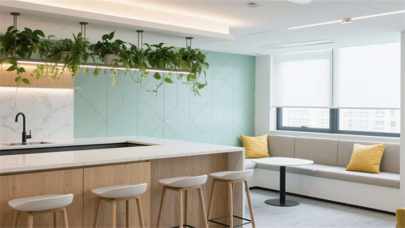 設(shè)計強調(diào)人文關(guān)懷,休閑區(qū)暖調(diào)燈光與柔軟卡座形成情緒緩沖帶,茶水間吧臺成為非正式社交樞紐。材質(zhì)選擇凸顯可持續(xù)理念,微水泥、再生木材與綠植系統(tǒng)貫穿始終,呼應(yīng)簡約背后的生態(tài)意識。整體空間在合肥這座創(chuàng)新之城,詮釋了高效辦公與人文溫度共生的當代范式。