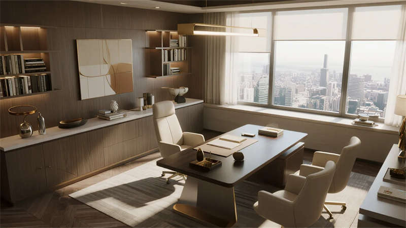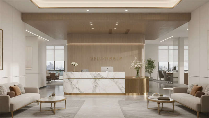 本設(shè)計(jì)以輕奢風(fēng)格為核心,打造一個(gè)優(yōu)雅而舒適的辦公環(huán)境。外觀采用現(xiàn)代建筑語(yǔ)言,玻璃幕墻與金屬細(xì)節(jié)相結(jié)合,彰顯高端氣質(zhì)。內(nèi)部空間注重細(xì)節(jié)與品質(zhì),接待區(qū)以大理石前臺(tái)和金屬裝飾營(yíng)造歡迎氛圍,開放式辦公區(qū)布局靈活,配備簡(jiǎn)約家具和自然光元素,提升工作效率。會(huì)議室設(shè)計(jì)專業(yè)且智能,私人辦公室融合落地窗和 luxury 裝飾,提供靜謐工作空間。員工休息區(qū)與咖啡角注重舒適性,軟裝家具和溫馨 lighting 促進(jìn)放松與交流。走廊區(qū)域通過(guò)藝術(shù)墻面和 lighting 效果增強(qiáng)空間感,整體設(shè)計(jì)融合材質(zhì)對(duì)比與柔和色調(diào),營(yíng)造出精致而人性化的辦公體驗(yàn),強(qiáng)調(diào)美學(xué)與功能的平衡。