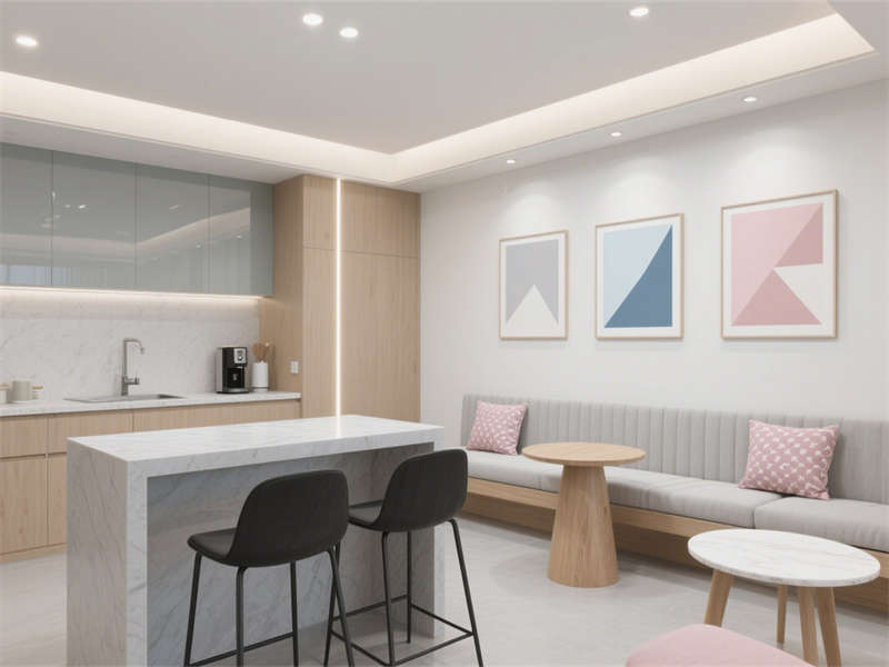 外觀設計上,采用淺灰色墻面搭配超白玻璃幕墻,玻璃內(nèi)側的品牌標識與門前綠植相呼應,弱化了建筑的冷硬感,展現(xiàn)出簡約大氣的辦公形象。進入室內(nèi),前臺接待區(qū)以淺灰與米白為基礎色調(diào),L型前臺搭配柔和燈光,等候區(qū)的布藝沙發(fā)與原木元素結合,給訪客帶來溫和專業(yè)的第一印象。?