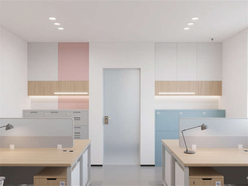 會議室聚焦會議需求,主視覺墻的色彩搭配緩解了會議的緊張感,智能會議屏與充足燈光滿足高效溝通。休閑茶水區(qū)作為員工放松的“第三空間”,卡座設計節(jié)省空間,色彩搭配活躍卻不雜亂,為員工提供舒適的休息環(huán)境。財務辦公室側重隱私與收納,磨砂玻璃設計兼顧采光與遮擋,充足的收納空間滿足財務辦公的特殊需求。儲物間則以實用為主,分區(qū)明確,便利的燈光設計提升了使用便捷性,整體保持與其他區(qū)域一致的風格,讓整個辦公室成為一個協(xié)調(diào)統(tǒng)一的整體。