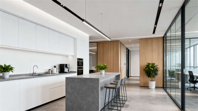 獨(dú)立辦公區(qū)注重私密性與實(shí)用性,通過合理的隔斷設(shè)計(jì)劃分空間,同時(shí)配備完善的辦公設(shè)施,滿足高效辦公需求。休閑區(qū)則營造出輕松愜意的氛圍,搭配柔軟的軟裝與綠植裝飾,為員工提供放松休憩的場所。會(huì)議室設(shè)計(jì)兼顧實(shí)用性與辨識(shí)度,運(yùn)用簡潔的裝飾元素與專業(yè)的設(shè)備配置,打造適合商務(wù)洽談與團(tuán)隊(duì)研討的空間。整體裝修設(shè)計(jì)從空間利用、視覺效果到使用體驗(yàn),全方位提升辦公室的品質(zhì)與格調(diào),為使用者創(chuàng)造舒適、高效的辦公環(huán)境。?