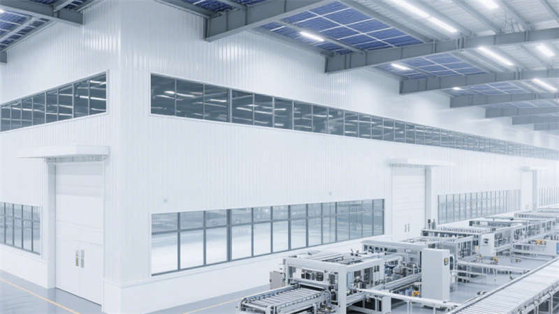 各區(qū)域在材質(zhì)選擇上注重實(shí)用性與質(zhì)感,搭配統(tǒng)一的設(shè)計(jì)語言,既展現(xiàn)出新能源產(chǎn)業(yè)的科技感,又讓整個(gè)廠房?jī)?nèi)部顯得和諧統(tǒng)一,滿足生產(chǎn)、倉儲(chǔ)與研發(fā)等多方面的功能需求。