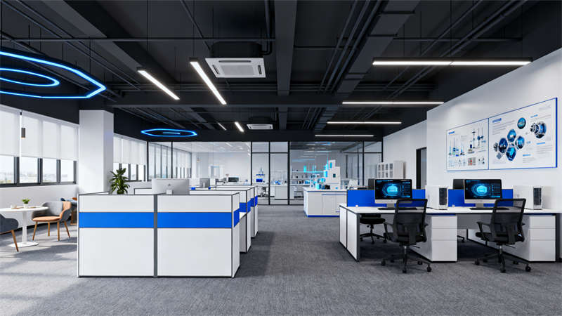 室內(nèi)空間設(shè)計以 “高效便捷” 為核心,各功能區(qū)域劃分清晰且銜接流暢。生產(chǎn)區(qū)域注重動線規(guī)劃,確保設(shè)備擺放與人員操作互不干擾,地面選用耐磨易清潔的材質(zhì),墻面以淺色調(diào)為主,增強空間明亮度,減少視覺疲勞;倉儲區(qū)域通過分層貨架與合理照明設(shè)計,提升儲物效率與取用便利性;辦公區(qū)域融入簡約辦公家具,搭配柔和燈光,營造舒適的工作氛圍;質(zhì)檢區(qū)域則強調(diào)視野開闊,便于工作人員精準操作;休息區(qū)域注重溫馨感,為員工提供放松空間;配電與設(shè)備機房采用規(guī)整的管線排布與防護設(shè)計,兼顧安全性與維護便捷性;通道區(qū)域通過清晰標識與防滑處理,保障人員通行安全。整體設(shè)計從生產(chǎn)、辦公、休憩等多維度出發(fā),讓廠房既滿足工業(yè)生產(chǎn)的實用需求,又具備舒適有序的空間體驗。