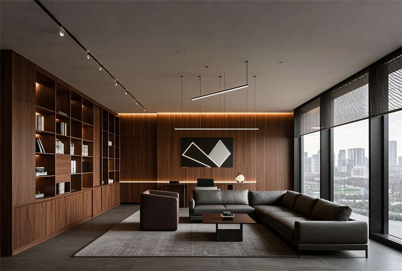 本項(xiàng)目為 3000㎡現(xiàn)代簡(jiǎn)約風(fēng)格辦公室整體設(shè)計(jì),以前沿的智能辦公理念為核心,采用淺灰、原木、金屬三色基調(diào)。空間規(guī)劃注重功能分區(qū)與動(dòng)線優(yōu)化,包含開(kāi)放辦公區(qū)、獨(dú)立辦公室、智能會(huì)議室等 10 大功能模塊。設(shè)計(jì)運(yùn)用穿孔鋁板、GRG 造型吊頂?shù)刃滦筒牧?,結(jié)合聲學(xué)處理和智能控制系統(tǒng),打造高效舒適的辦公環(huán)境。照明系統(tǒng)采用 4000K 暖白光搭配線性燈帶,確保工作照度同時(shí)營(yíng)造現(xiàn)代感。環(huán)保方面選用 E0 級(jí)板材和凈味涂料,配備新風(fēng)凈化系統(tǒng)。特色設(shè)計(jì)包括可升降圓桌休息區(qū)、電動(dòng)霧化玻璃會(huì)議室及太空艙電話亭,充分滿足多元化辦公需求??臻g內(nèi)設(shè)置 20% 靈活可變區(qū)域,支持未來(lái)團(tuán)隊(duì)擴(kuò)展。所有家具均符合人體工學(xué)標(biāo)準(zhǔn),墻面裝飾融入企業(yè) VI 元素,塑造專業(yè)品牌形象。