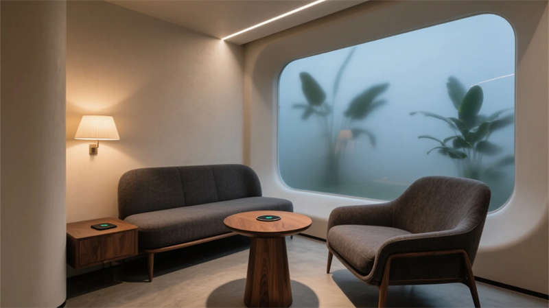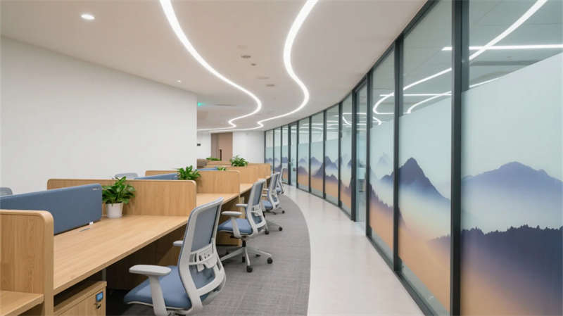 智能會(huì)議艙化身科技繭房,霧化玻璃平衡開放與隱私,觸控桌面簡(jiǎn)化流程。貫穿始終的暖木、灰白與苔蘚綠,在全景天光下沉淀出寧?kù)o能量。此處不僅是工作容器,更是蚌埠創(chuàng)新浪潮下,滋養(yǎng)靈感、尊重個(gè)體的未來(lái)生態(tài)聚落。