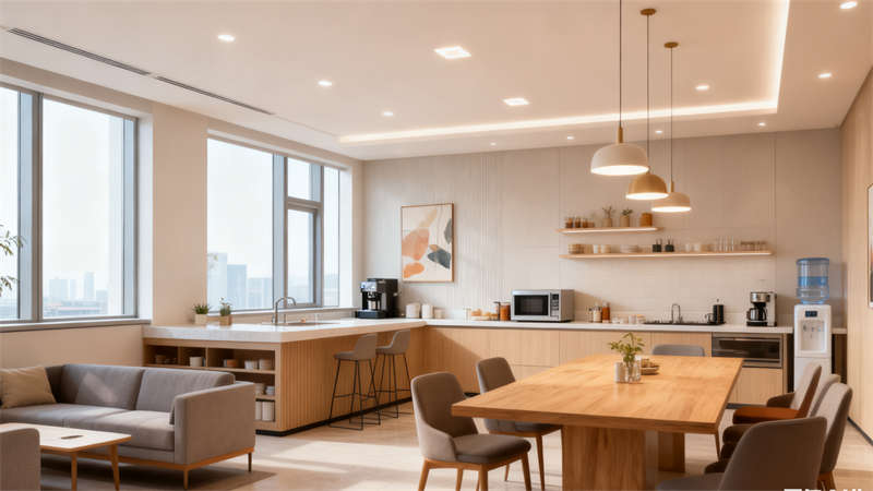 室內(nèi)空間延續(xù)整體設(shè)計語言,大堂以開闊通透的布局營造舒適第一印象,柔和的光線與簡約的軟裝搭配,消解辦公空間的嚴(yán)肅感;開放辦公區(qū)注重空間通透性與互動性,合理規(guī)劃動線,讓交流與專注互不干擾;會議室以沉穩(wěn)色調(diào)為主,搭配質(zhì)感材質(zhì),營造高效嚴(yán)謹(jǐn)?shù)淖h事氛圍;休閑區(qū)則融入溫馨元素,為人員提供放松休憩的角落;茶水間兼顧實用與美觀,收納設(shè)計細(xì)致,滿足日常使用需求;走廊通過燈光與墻面裝飾的巧妙結(jié)合,避免狹長空間的壓抑感;獨立辦公區(qū)注重私密性與舒適度,細(xì)節(jié)布置彰顯人文關(guān)懷。