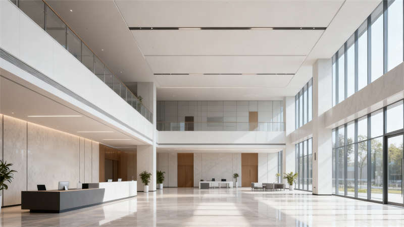 本設(shè)計圍繞蚌埠地域人文特質(zhì)與現(xiàn)代辦公需求展開,在辦公樓裝修中實現(xiàn)功能與美學(xué)的深度融合,確保外觀與室內(nèi)風(fēng)格高度統(tǒng)一,呈現(xiàn)連貫的項目整體感。