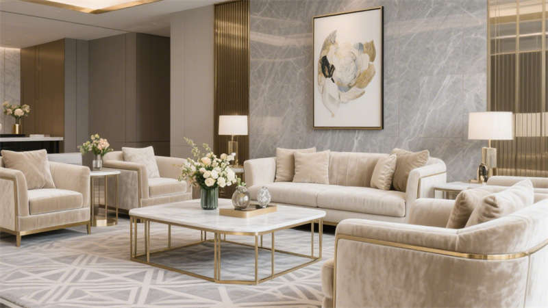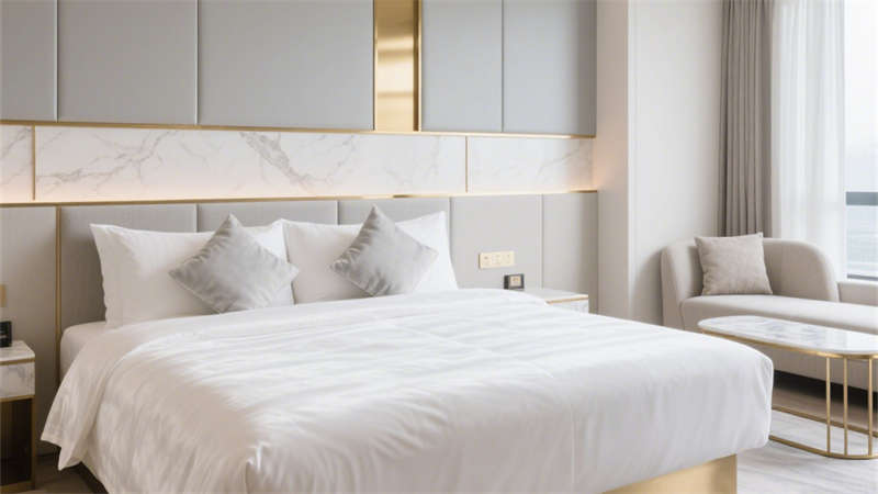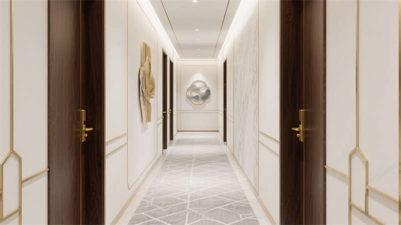 本設(shè)計(jì)以輕奢風(fēng)格為核心,通過柔和的基底色調(diào)與精致的細(xì)節(jié)搭配,構(gòu)建出兼具質(zhì)感與舒適度的酒店環(huán)境??臻g以米白色與淺灰色為基礎(chǔ),巧妙融入金色金屬線條作為點(diǎn)綴,既避免了過度奢華的厚重感,又增添了空間的精致度。墻面與地面選用細(xì)膩的大理石紋理材質(zhì),在光線映襯下呈現(xiàn)出自然的光澤,提升整體空間的高級(jí)感。家具選型注重線條的簡(jiǎn)約流暢,搭配柔軟的布藝軟裝,營(yíng)造出溫馨舒適的居住氛圍。各個(gè)區(qū)域在設(shè)計(jì)上保持風(fēng)格統(tǒng)一,從公共空間到客房區(qū)域,都延續(xù)了輕奢的設(shè)計(jì)語(yǔ)言,讓整體空間既富有格調(diào),又能給人帶來(lái)放松愜意的居住體驗(yàn)。