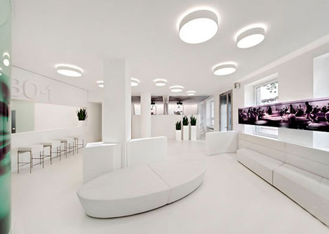 設(shè)計(jì)理念:牙科診所最終還是歸屬醫(yī)院范疇,給病人治病的。只是牙科診所可以在裝修上比醫(yī)院有更多的想法和創(chuàng)意的設(shè)計(jì)元素在里面。白色的地磚灰色的座椅使空間設(shè)計(jì)更嚴(yán)謹(jǐn),傳遞出一種信任感并營(yíng)造出臨床氛圍。