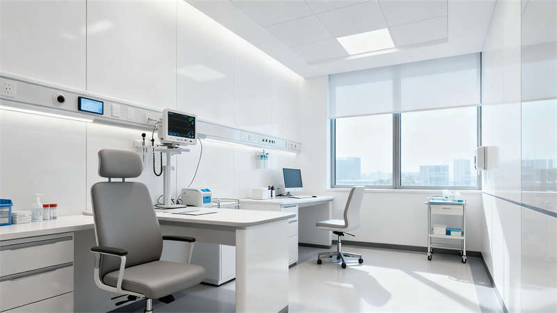 室內(nèi)空間的裝修處處體現(xiàn)對(duì)患者與醫(yī)護(hù)人員的關(guān)懷。大廳區(qū)域通過(guò)合理的功能分區(qū)與柔和的燈光設(shè)計(jì),減少患者就醫(yī)時(shí)的緊張感,同時(shí)保證通行的順暢性。診室裝修強(qiáng)調(diào)實(shí)用性與私密性,合理規(guī)劃診療設(shè)備的擺放位置,讓醫(yī)護(hù)人員操作更便捷,也為患者提供安靜的診療環(huán)境。?