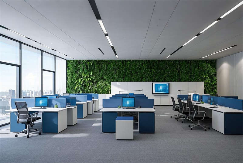本項目為4500㎡現(xiàn)代簡約風格辦公樓整體設計,以'高效·生態(tài)·智能'為核心設計理念。空間采用淺灰、木色、深藍三色基調(diào),搭配企業(yè)VI系統(tǒng)的橙色點綴。重點區(qū)域配置智能照明系統(tǒng)和模塊化家具,實現(xiàn)空間靈活重組。環(huán)保建材使用率達到85%,包含竹木纖維板、低VOC涂料和再生地毯。創(chuàng)新運用垂直綠化墻改善空氣質(zhì)量,結(jié)合全景玻璃幕墻最大限度引入自然光線。智能系統(tǒng)集成人臉識別門禁、環(huán)境監(jiān)測及會議預約系統(tǒng),打造現(xiàn)代化智慧辦公空間。功能分區(qū)涵蓋高效辦公區(qū)、智能會議系統(tǒng)、生態(tài)休閑空間三大模塊,滿足多元化辦公需求。