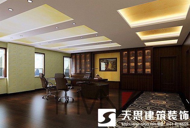 有的老板為了節(jié)約地方?jīng)]設(shè)自己辦公室,有的老板為了顯氣派,把自己的辦公室弄的特別大,這兩種情況都是不合理的??偨?jīng)理辦公室就像龍頭,過大或過小都會(huì)造成公司整體運(yùn)轉(zhuǎn)不靈活, 面對(duì)各種競爭不能隨機(jī)應(yīng)變,從而阻礙發(fā)展。那么多大的面積比較合適呢,一般總經(jīng)理的辦公室占整體面積的四分之一左右為宜,這里說的不包括工廠。