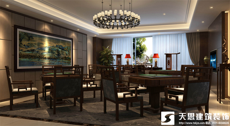棋牌室的裝修風(fēng)格,不僅僅是一種美觀,而更主要的是為了讓客戶有一種耳目一新的體驗,在客戶心中留下深深的烙印,因此現(xiàn)在的店鋪裝修風(fēng)格更趨向獨(dú)特性,現(xiàn)在棋牌室的裝修一般以中式為主,房間裝修可以考慮貼墻紙,墻面局部有簡單的木飾面板拼紋或?qū)嵞靖裨煨?,地面最好采用仿古磚。另外由于現(xiàn)在店鋪的租金問題,如何才能讓有限的空間能夠能過設(shè)計放大等等其他一系列問題,都是設(shè)計者應(yīng)該考慮的問題。