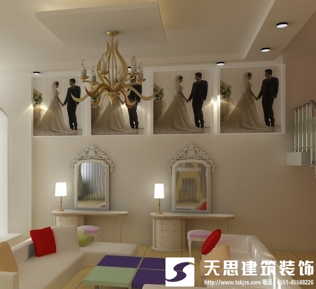 影樓裝修設計中一般注意:在選擇裝飾公司的時候千萬不能馬虎,可以找家性價比高的公司來裝。設計師的水準也很重要的。小型影樓店面裝修一般軟裝比較重要,本身地方小不便于做很多裝修格局,可以多做些軟裝飾來吸引客戶。