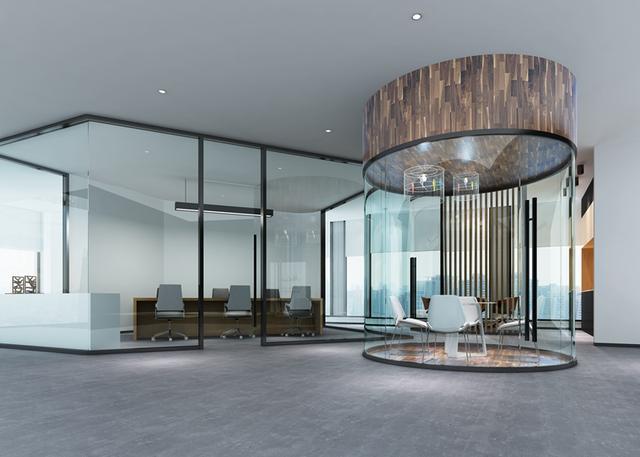 像“巢”一樣的圓柱形洽談區(qū)別有寓意,玻璃材質(zhì)既保證了客戶在洽談時視覺上的通透,也照顧了客戶心理上對私密性的需求。