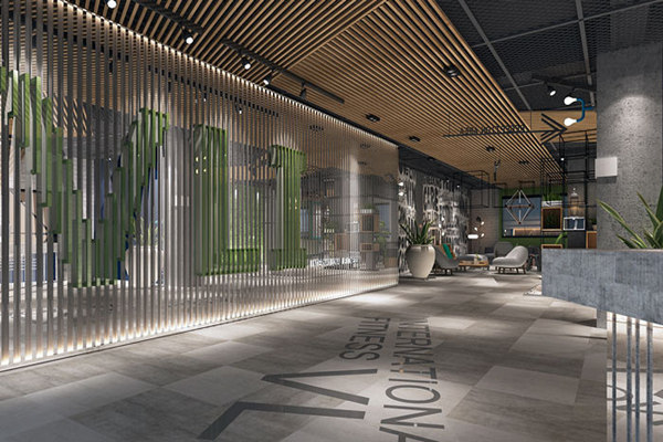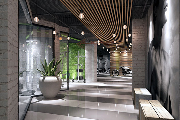 在室內(nèi)空間中,主色大面積采用大地色(大地灰),不但最具親和力,也能夠讓體能訓練者在運動中逐漸找到運動的節(jié)奏,同時可以讓瑜伽類安靜的運動得到一種精神的放松。