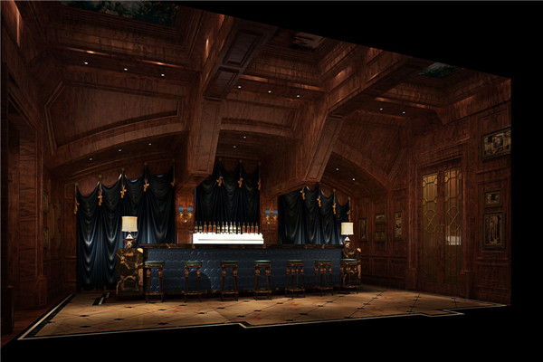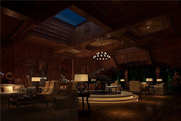 休閑區(qū)的酒室則效仿歐式經(jīng)典酒窖的樣式,皮質(zhì)沙發(fā)、半露天頂和大吊燈,在悠揚(yáng)的鋼琴聲中享受酒精的熏陶。