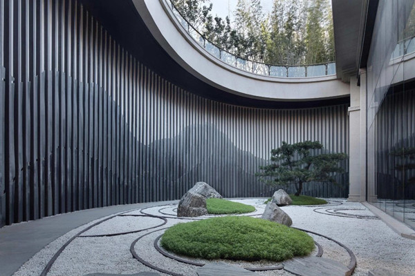 用色退歸自然,僅以石材與木材打造基調,線條錯落有序構筑成東方涵韻,為傳統(tǒng)建筑煥新,展現(xiàn)沉穩(wěn)而睿智。