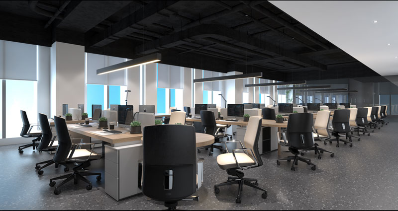 三、照明和通風(fēng) 照明和通風(fēng)是辦公室裝修中不容忽視的兩個方面。良好的照明不僅能讓員工看清楚屏幕上的文字,還能減少眼睛疲勞。一般來說,使用柔和的間接光源比刺眼的直接光源更有利于提高工作效率。同時,通風(fēng)系統(tǒng)也至關(guān)重要,它能保持室內(nèi)空氣的新鮮,有利于員工的健康。