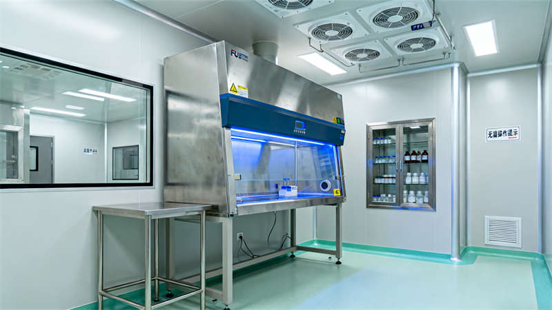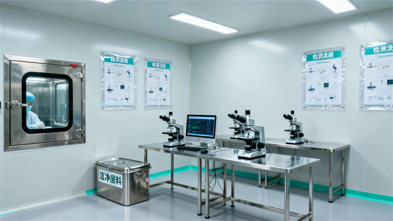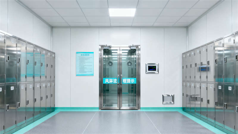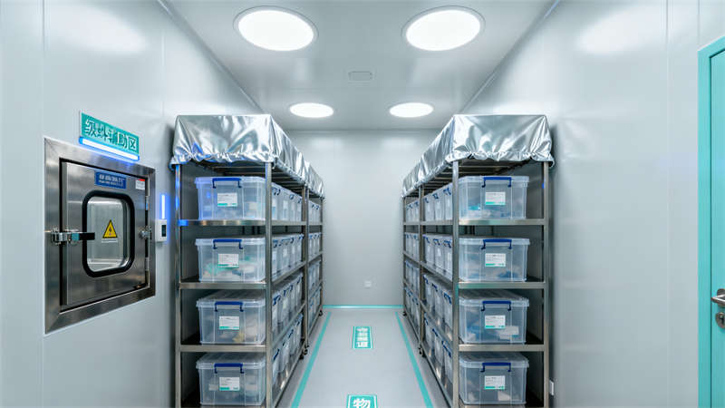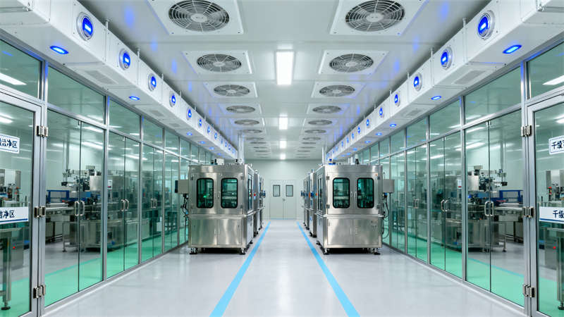 室內(nèi)空間劃分清晰,入口風淋室作為潔凈第一道防線,搭配專屬衣柜區(qū),助力人員規(guī)范進入;核心生產(chǎn)區(qū)以通透玻璃隔斷劃分,搭配高效過濾設備,營造潔凈通透的操作環(huán)境,操作人員身著專業(yè)潔凈服,盡顯規(guī)范作業(yè)氛圍。輔助區(qū)域同樣注重細節(jié),物料暫存間采用防塵物料架與傳遞窗設計,確保物料潔凈存儲與轉運;無菌實驗室配置專業(yè)安全柜與試劑柜,滿足高潔凈等級操作需求;潔凈走廊通過清晰標識引導動線,連接各功能區(qū)域,提升空間流轉效率;空調(diào)機房作為動力核心,設備布局規(guī)整,保障整體潔凈系統(tǒng)穩(wěn)定運行。?