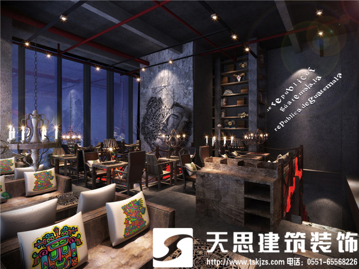 吧臺處,由瑪雅建筑紋理拼接的背景墻以及傾斜的人面雕塑敲碎的太陽歷都展現(xiàn)著一種不可逆轉(zhuǎn)的歷史思維,形象精美的浮雕彰顯出貴族氣質(zhì)和王者風(fēng)范。所有素材原始自然沒有冗余的修飾,在簡約純粹的大背景下,巧妙鋪排空間,著力烘托出有內(nèi)涵、高品位、精英范兒、國際化的精神理念。