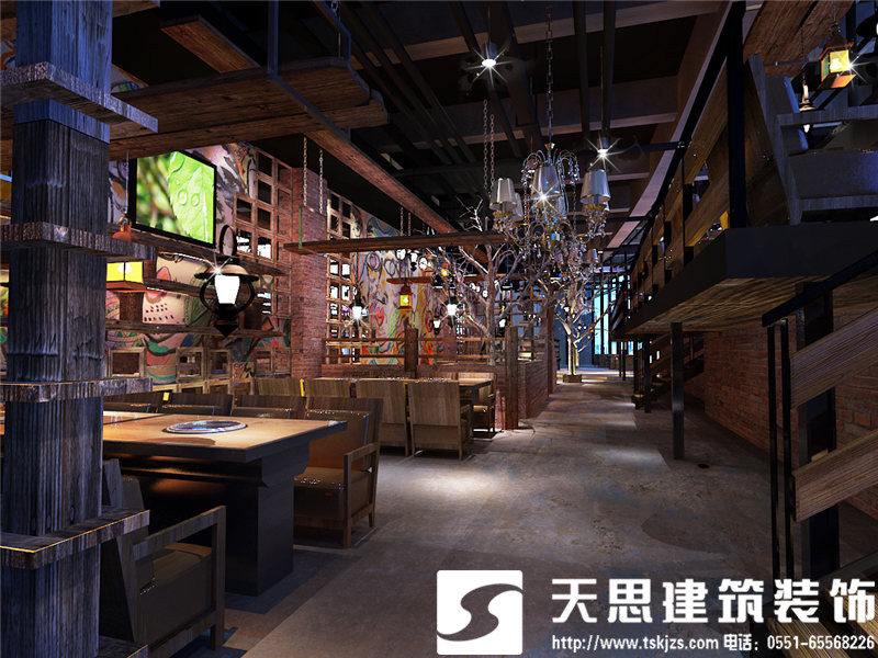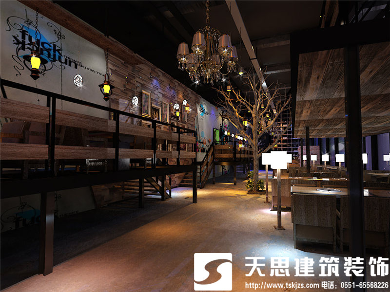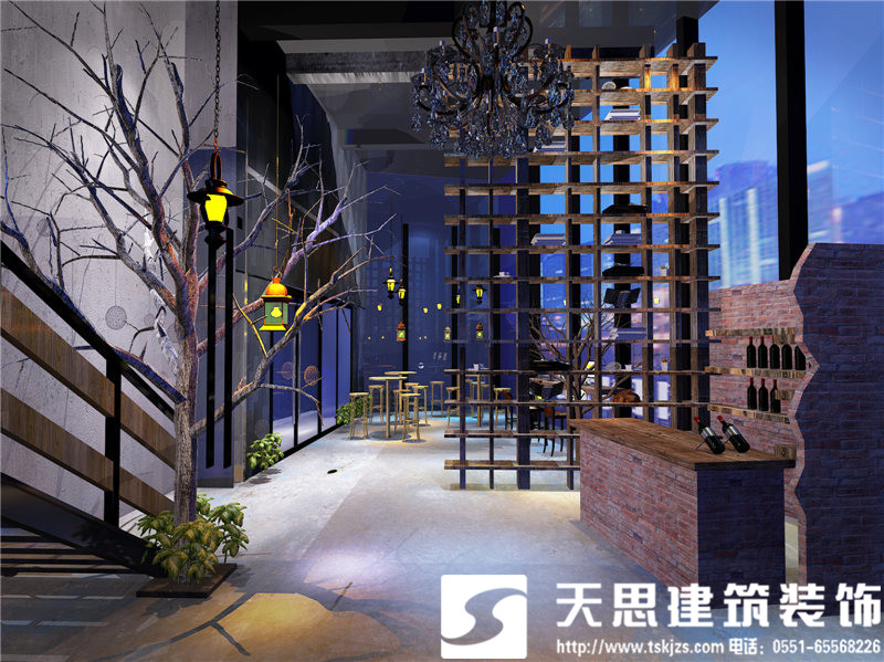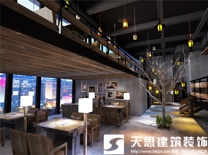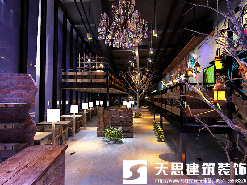 挑空的設計使一層的開敞空間簡潔而清晰,合理的區(qū)域劃分,凌空而起的二層餐飲區(qū),將挑空設計處理到最舒服的狀態(tài)。流光溢彩的琉璃燈讓簡約的設計愈發(fā)有了韻味,別致的風景畫懸掛于清水混凝土墻面上,讓單調(diào)的色澤有了藝術(shù)的張力。頂面、地面和墻面只做簡單處理,采用清水混凝土或原木板等自然材料,不添加任何多余的修飾,如此精簡的設計卻絲毫不減空間的魅力。