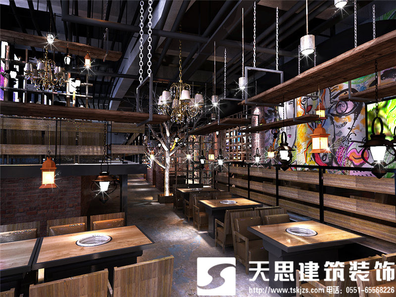 釜山料理針對料理空間,設計上的精細與氛圍必不可少。在設計之初,他秉承對料理文化的尊重,在歸本主義的理念之上融入料理文化,將玻璃、水泥地面、墻壁、木板等原生態(tài)材料與色彩亮麗的涂鴉壁畫相結(jié)合,整體設計不刻意追求自然,卻散發(fā)無可抵擋的原始味道。
