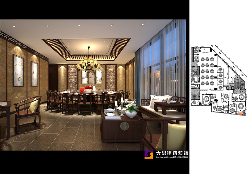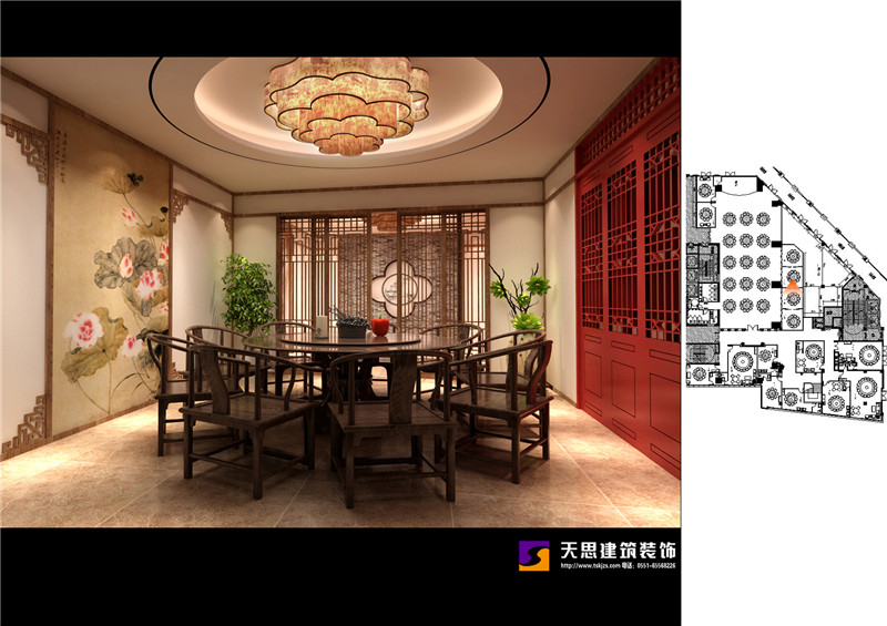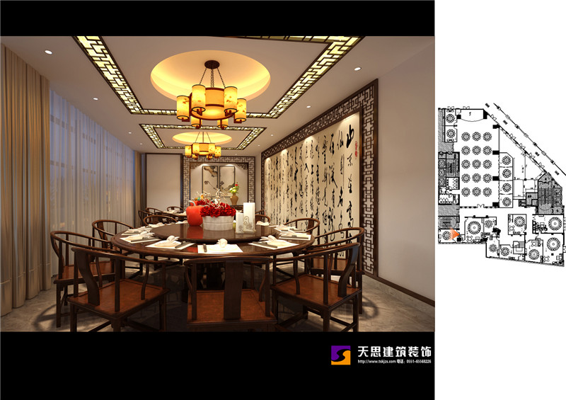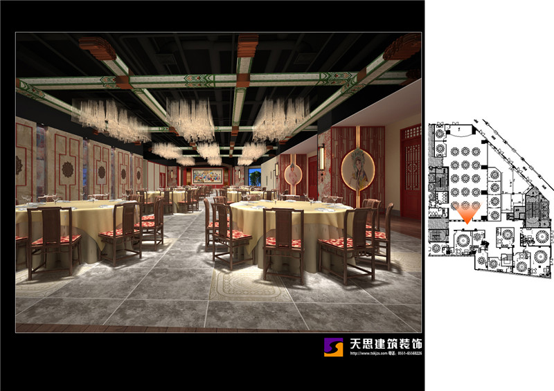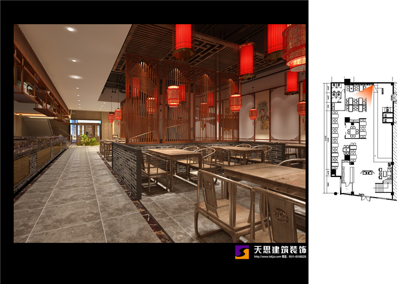 夢徽州酒店四樓火鍋店設(shè)計效果