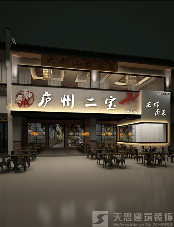 店面裝修設(shè)計(jì):麻辣蝦幾個(gè)大字和龍蝦圖形,讓客戶清楚的看到本店的主營(yíng)業(yè)務(wù),小空間大介紹,目的就是為了突出餐飲店的介紹,主次分明,是設(shè)計(jì)中的重要一環(huán)。