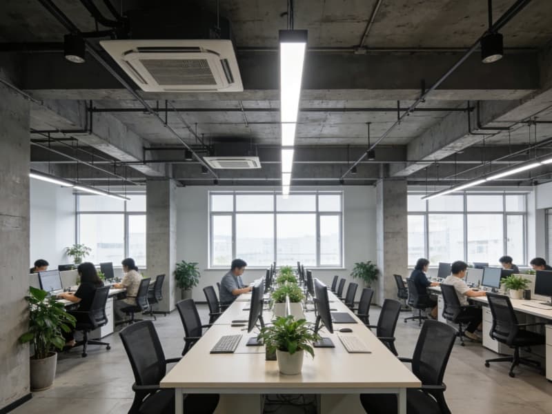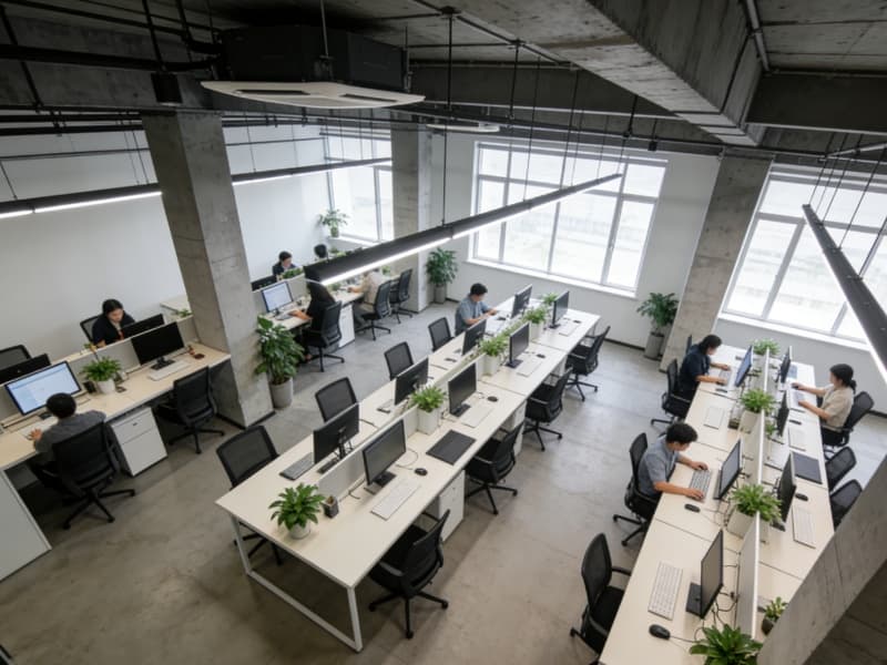 辦公區(qū)域以簡潔實用為主,采用開放式與獨立辦公室相結(jié)合的布局。開放式辦公區(qū)的辦公桌排列整齊,員工之間溝通便捷。獨立辦公室則為管理人員提供安靜的工作環(huán)境。辦公家具選用簡約現(xiàn)代風(fēng)格,搭配綠植,營造舒適的辦公氛圍。
