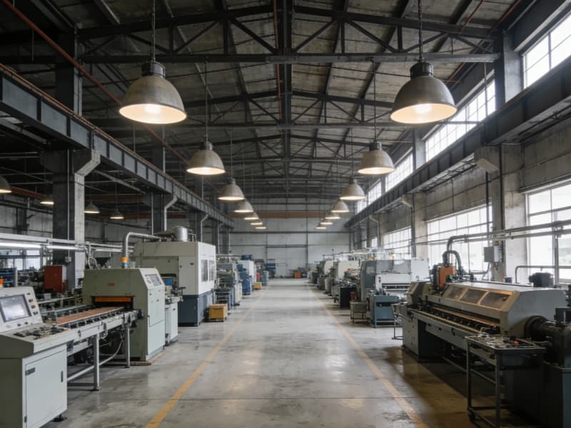 進(jìn)入廠房內(nèi)部,生產(chǎn)區(qū)域空間開闊,挑高的設(shè)計讓整個空間顯得寬敞明亮。頂部采用裸露的鋼梁結(jié)構(gòu),搭配大型的吊燈,既滿足生產(chǎn)照明需求,又強化了工業(yè)風(fēng)格。地面選用耐磨的水泥自流平,堅固耐用且易于清潔。生產(chǎn)設(shè)備按照工藝流程有序擺放,通道寬敞,確保生產(chǎn)流程順暢高效。