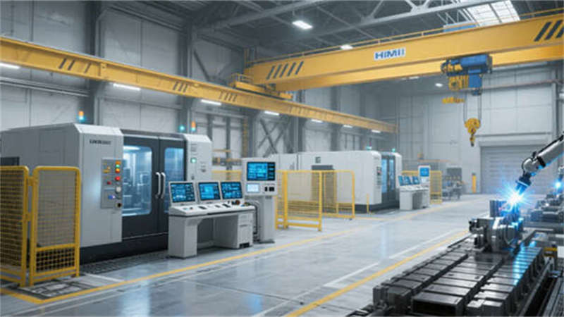 核心生產(chǎn)區(qū)以灰調(diào)環(huán)氧樹(shù)脂地坪為基底,大型CNC加工中心與智能機(jī)械臂組成“U”型產(chǎn)線(xiàn),頂部集成黃色安全標(biāo)識(shí)的橋式起重機(jī)軌道,配合藍(lán)光焊接機(jī)器人動(dòng)態(tài)光軌,形成極具未來(lái)感的工業(yè)圖景。辦公區(qū)突破傳統(tǒng)廠(chǎng)房設(shè)計(jì),通過(guò)混凝土肌理墻面、懸浮式玻璃會(huì)議艙及企業(yè)色聲學(xué)模塊,構(gòu)建開(kāi)放互聯(lián)的智慧管理中樞。