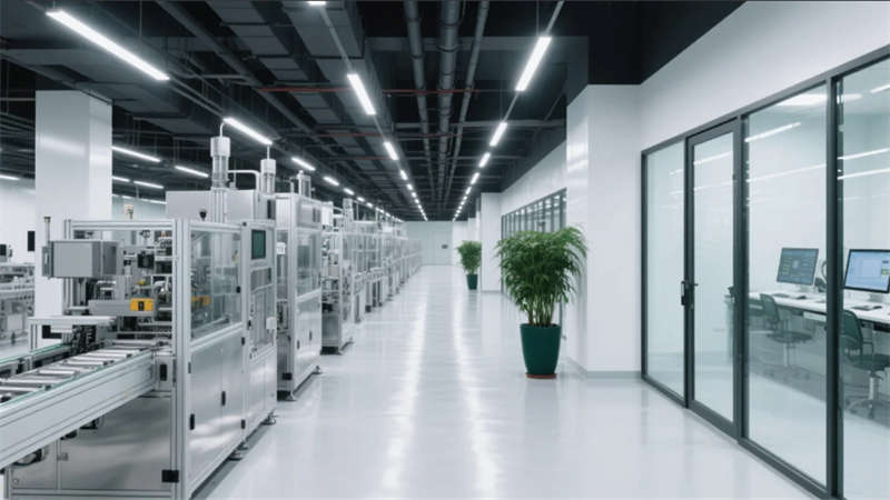 這座廠房以"工業(yè)容器中的自然共生"為核心理念,打破傳統(tǒng)生產空間的冰冷邊界。流動的銀灰主調串聯起全場景,裸露的結構肌理與溫潤木元素形成張力碰撞,智能設備在光影交織中高效運轉。