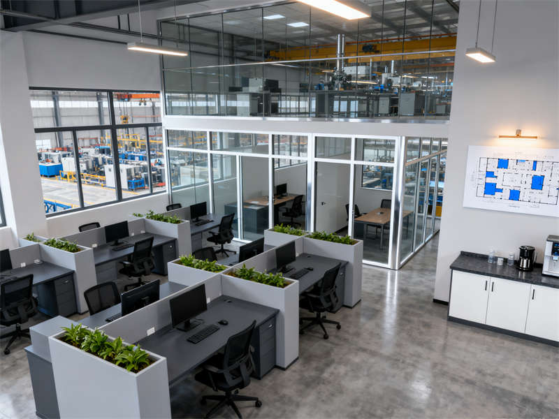 成品檢驗(yàn)區(qū)配備精密檢測(cè)儀器,合理的分區(qū)設(shè)計(jì)與適宜的照明,為精準(zhǔn)檢測(cè)提供保障。員工辦公區(qū)與休息區(qū)則兼顧實(shí)用性與舒適度,開(kāi)放式辦公布局搭配獨(dú)立辦公室,休息區(qū)的沙發(fā)、餐柜等設(shè)施,為員工營(yíng)造出良好的工作與放松環(huán)境。整體設(shè)計(jì)在色彩與材質(zhì)運(yùn)用上保持高度統(tǒng)一,既體現(xiàn)工業(yè)廠(chǎng)房的專(zhuān)業(yè)特質(zhì),又增添了人性化氛圍。?