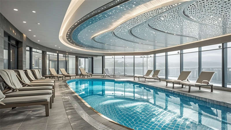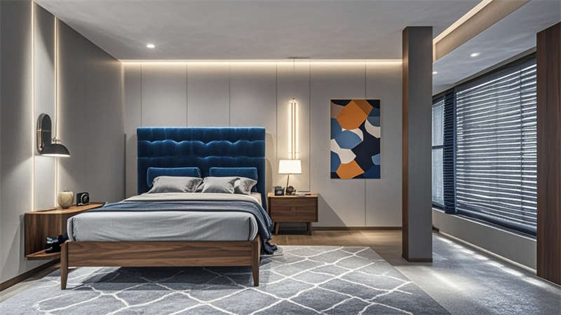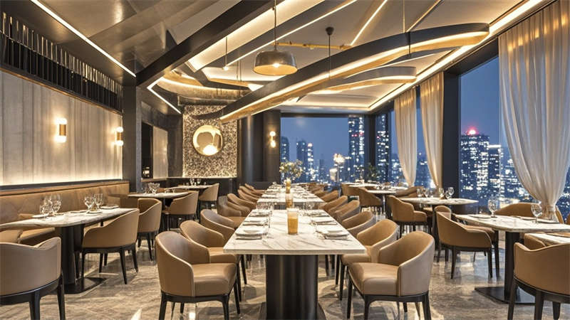 本2000平現(xiàn)代簡約風格酒店設計以'城市綠洲'為核心理念,通過流線型空間布局構建高效動線。大堂采用懸浮式水晶燈與淺灰大理石地面形成視覺焦點,金屬與木質的冷暖對比提升空間質感??头繀^(qū)運用深藍與淺灰的撞色搭配,配合智能照明系統(tǒng)實現(xiàn)多場景模式切換。公共區(qū)域大量運用無框玻璃隔斷,保持空間通透性的同時實現(xiàn)功能分區(qū)。色彩體系以米白為基底,點綴深胡桃木與香檳金,局部運用幾何紋樣增強設計感。材料選擇注重環(huán)保與耐用性,石材、金屬與吸音材質的組合兼顧美觀與實用。燈光設計采用多層次照明系統(tǒng),筒燈、燈帶與裝飾照明相結合,營造舒適光環(huán)境。各功能區(qū)域通過統(tǒng)一的材質語言和色彩邏輯保持整體協(xié)調,同時根據(jù)不同使用需求進行個性化設計,如會議室配備移動隔斷實現(xiàn)靈活分隔,健身中心采用防滑橡膠地板等專業(yè)處理