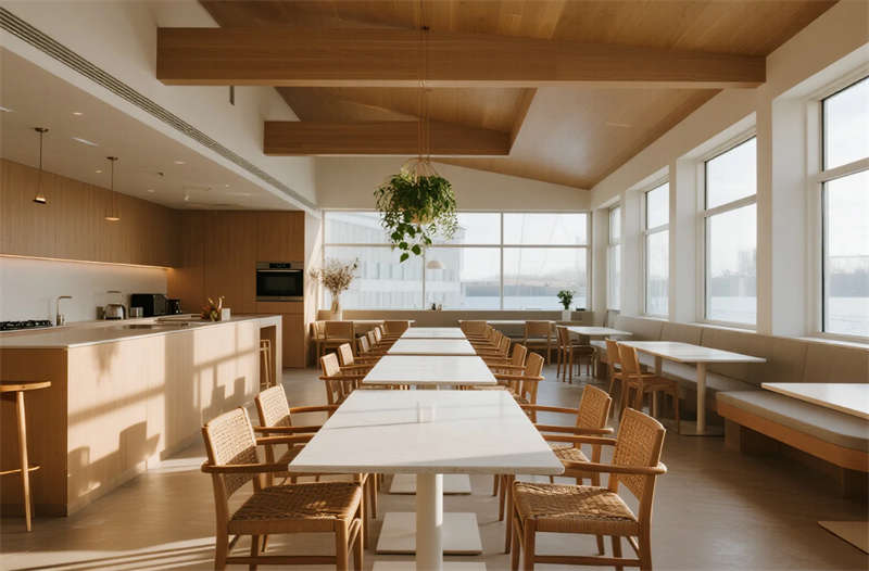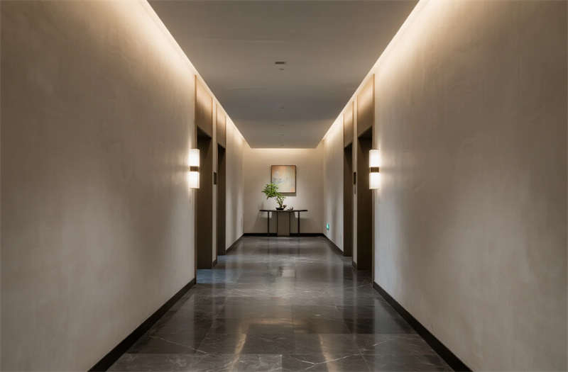 該設(shè)計以“城市綠洲”為核心理念,打造兼具功能與美學(xué)的經(jīng)濟型住宿空間。建筑外觀采用干凈利落的幾何切割,淺灰與玻璃材質(zhì)碰撞出輕盈現(xiàn)代感,入口綠植墻軟化都市冷硬氛圍。內(nèi)部空間貫徹簡約哲學(xué):模塊化家具系統(tǒng)最大化利用面積,榻榻米客房集成儲物與休憩功能,隱藏式燈光營造舒緩氛圍。公共區(qū)域強調(diào)共享與自然連接,早餐區(qū)落地窗引入晨光,綠植點綴的休息區(qū)提供社交場景。材質(zhì)選擇克制而統(tǒng)一,淺木色、微水泥與亞麻織物構(gòu)成低飽和度基調(diào),局部點綴抽象線條藝術(shù),呼應(yīng)合肥現(xiàn)代都市氣質(zhì)。設(shè)計聚焦高效運營與人文關(guān)懷,通過智能分區(qū)和環(huán)保細節(jié),為旅客提供回歸本質(zhì)的寧靜棲居體驗。