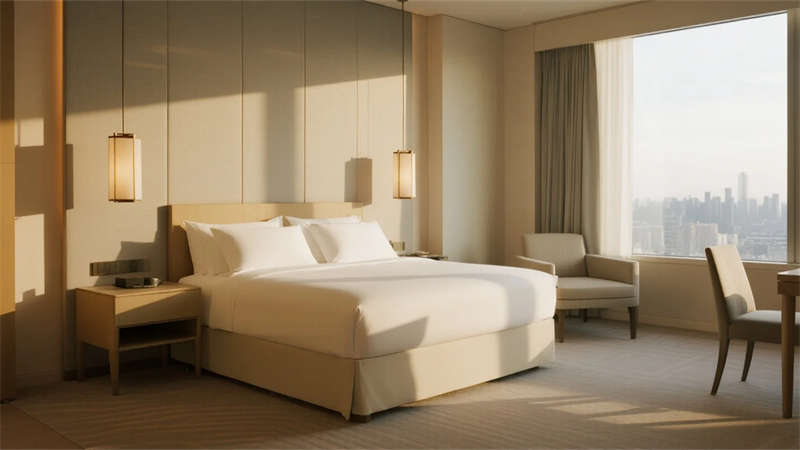 空間布局開闊通透,巨大的落地窗將自然光引入室內(nèi),與精心設(shè)計的隱藏式燈光系統(tǒng)共同營造出溫暖而富有層次的光影氛圍。從大堂的恢弘大氣到客房的靜謐溫馨,每一處細(xì)節(jié)都旨在為旅客提供一種沉浸式的、回歸本真的休憩體驗(yàn)。整體設(shè)計強(qiáng)調(diào)人與空間的情感連接,在簡約中蘊(yùn)含深度,于現(xiàn)代中流露溫潤,成就了一處城市中可呼吸、可感知的詩意棲居地。