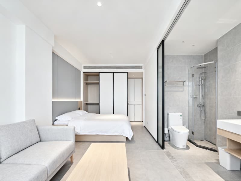 本設(shè)計以簡約風格為核心,圍繞2000平酒店的居住與功能需求,打造兼具質(zhì)感與舒適的空間。整體摒棄繁雜的裝飾元素,以淺白、淺灰、淺木色為基礎(chǔ)色調(diào),通過材質(zhì)的質(zhì)感對比與光線的柔和運用,傳遞簡約而不冰冷的氛圍,讓客人在簡潔的環(huán)境中獲得放松的居住體驗。?