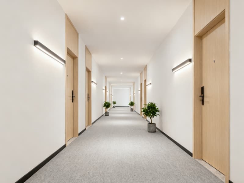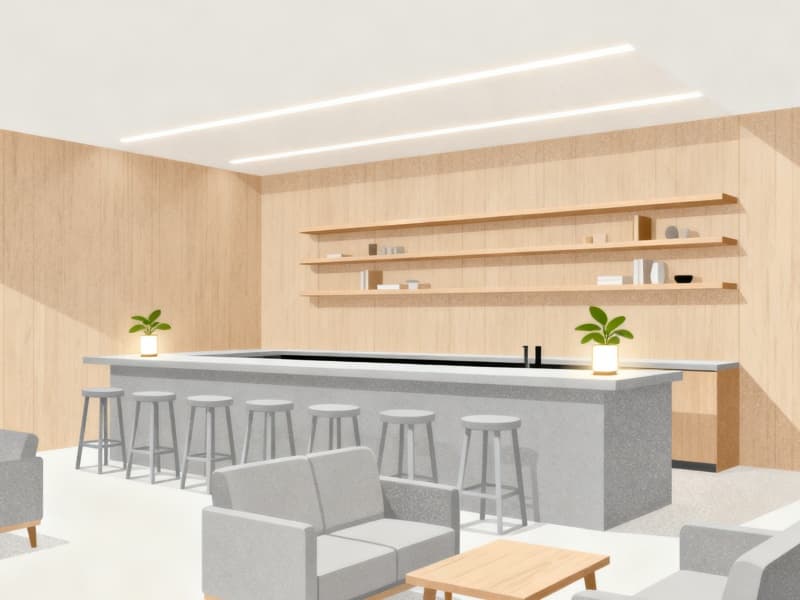 設(shè)計中注重細節(jié)的把控,從地面材質(zhì)的選擇(如走廊的靜音地毯),到照明的搭配(如茶吧的間接照明),再到綠植的點綴,每一處細節(jié)都圍繞“簡約舒適”展開。既保證空間的整潔有序,又通過柔軟的材質(zhì)、柔和的光線與自然綠植,為簡約空間注入溫度,避免過度簡約帶來的生硬感。?