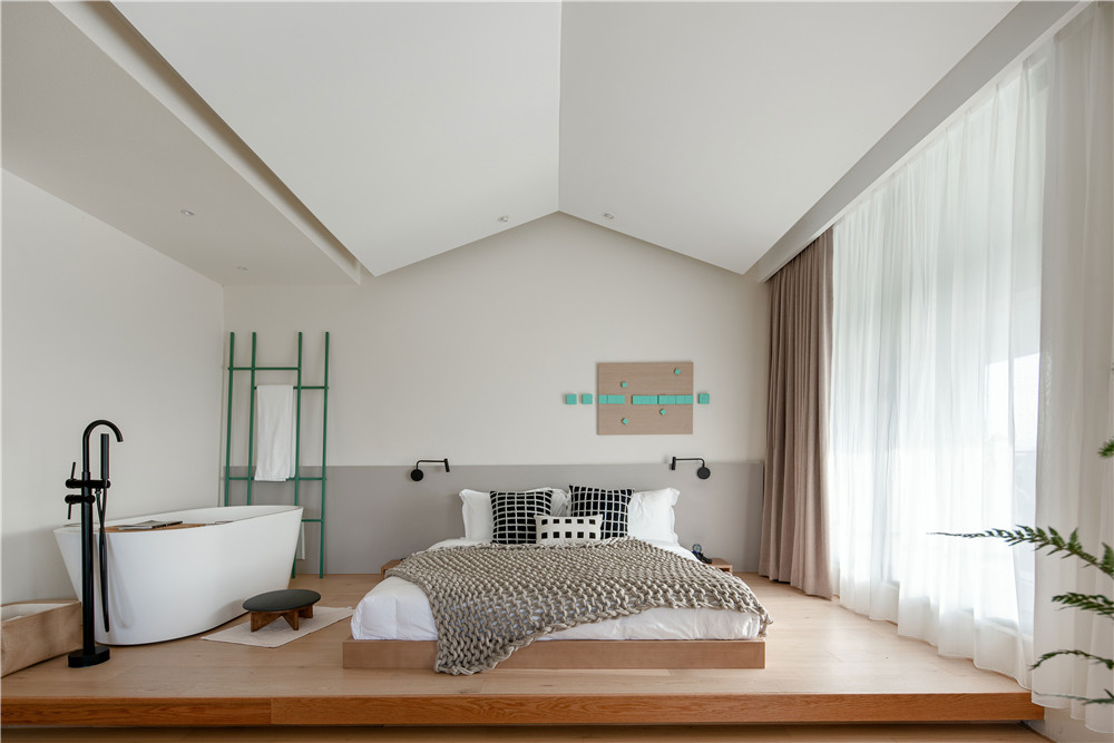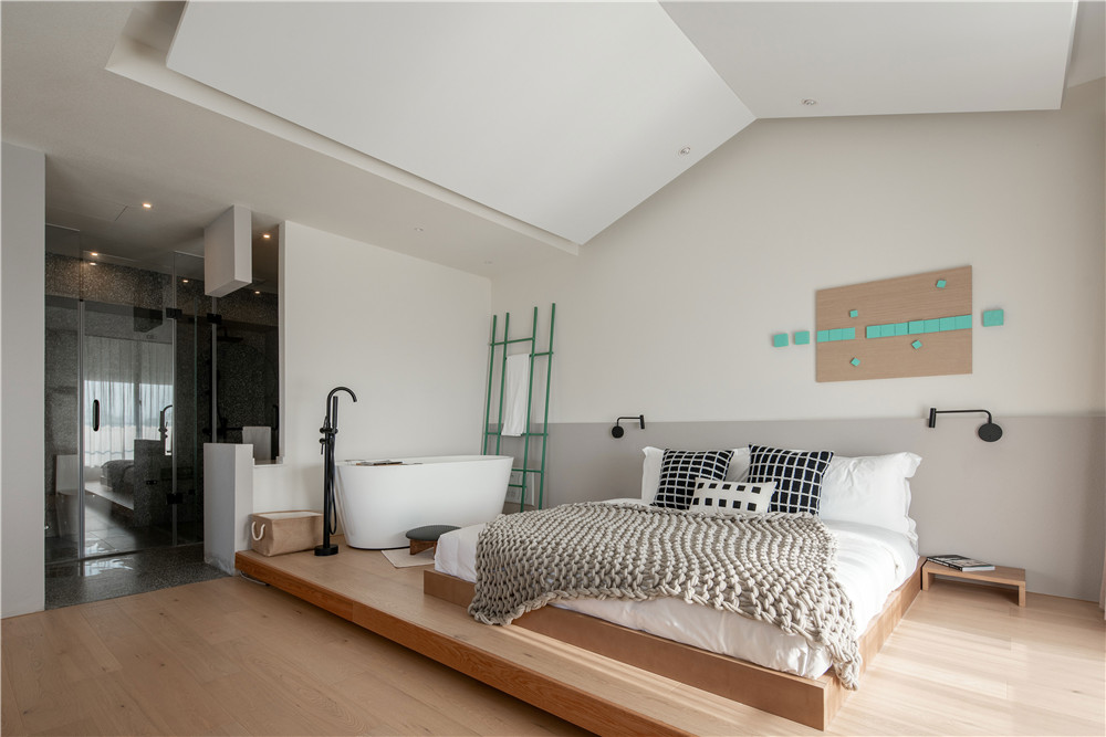 設(shè)計(jì)師一直在思考如何營造空間的秩序、空間的關(guān)系、空間的情感,最終打造了一個(gè)“無限藝術(shù)空間”,整個(gè)空間運(yùn)用簡單的方形,相互疊加、構(gòu)筑,空間的關(guān)系或敞開,或閉合,達(dá)到一種無邊界的空間狀態(tài)。推掉原有的墻體,又新建新的墻體,用“不完整”的方形劃分空間界限。同時(shí)在色彩上,回應(yīng)對“藝術(shù)”的思考,設(shè)計(jì)師運(yùn)用了白色,這種無色的顏色,也在述說著空間情感,更純粹,更真實(shí),且沒有邊界,為每一位到訪者留下無限的想象空間。