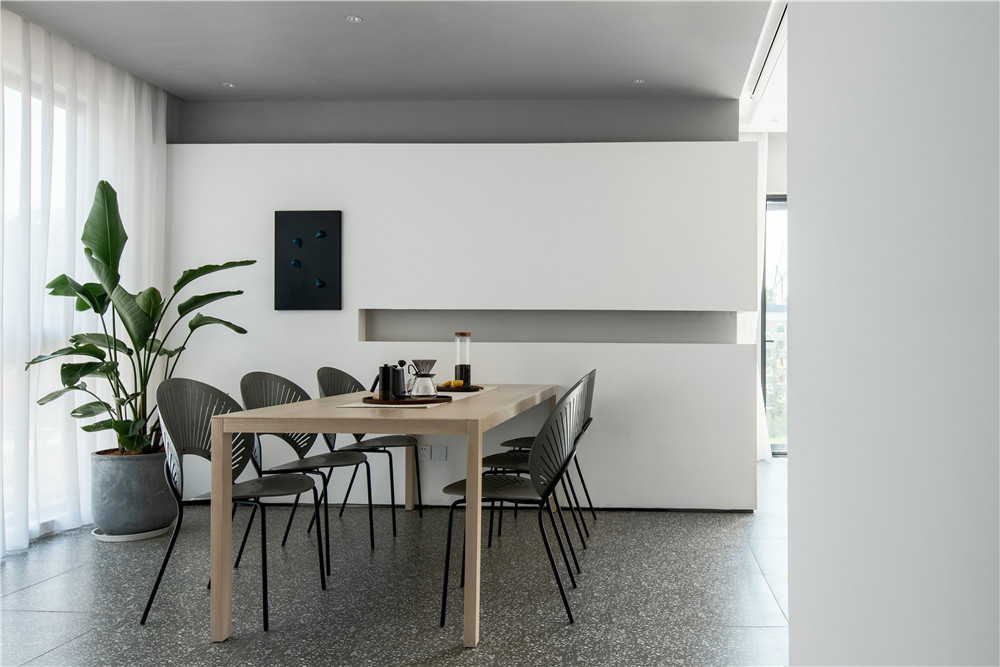 特色墻面 耐臟也很神秘,當(dāng)然不能是全部黑色。雖然黑色磕碰掉以后也會很難打理修補,但是如果某一面墻體用上黑色的油漆,會對空間感有拉伸的效果,這套公寓黑色墻面也與地面非常搭配。