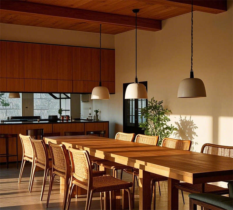 這套1000平民宿設計以自然簡約風格為核心,營造出溫暖舒適、貼近自然的居住體驗。整體空間以原木色調為主,搭配米白色、淺灰等柔和色彩,輔以綠植點綴,呈現(xiàn)出清新自然的氛圍。大堂以原木色前臺和藤編吊燈為亮點,搭配落地窗引入充足光線,營造出溫馨的迎賓空間??蛷d采用開放式布局,原木地板與編織地毯相得益彰,搭配圓形茶幾和落地燈,打造出輕松愜意的休閑區(qū)域。餐廳延續(xù)自然風格,長桌與藤編餐椅的組合簡潔大方,開放式廚房與吧臺的設計增強了空間的互動性。臥室分為兩種風格,一種以藤編床頭和棉麻床品為主,營造出舒適的睡眠環(huán)境;另一種采用日式榻榻米設計,搭配推拉門和竹林景觀,傳遞出寧靜禪意的氛圍。浴室同樣注重自然元素的運用,圓形浴缸與綠植的結合讓人仿佛置身于自然之中,而日式風格的浴室則通過竹制裝飾和庭院景觀,進一步強化了寧靜放松的體驗。戶外庭院以石板小路和木質平臺為主,搭配休閑桌椅和綠植環(huán)繞,為客人提供了一個親近自然的戶外休閑空間。整體設計注重材質與光影的運用,將自然元素與現(xiàn)代簡約風格完美融合,打造出一個舒適、放松的民宿空間。