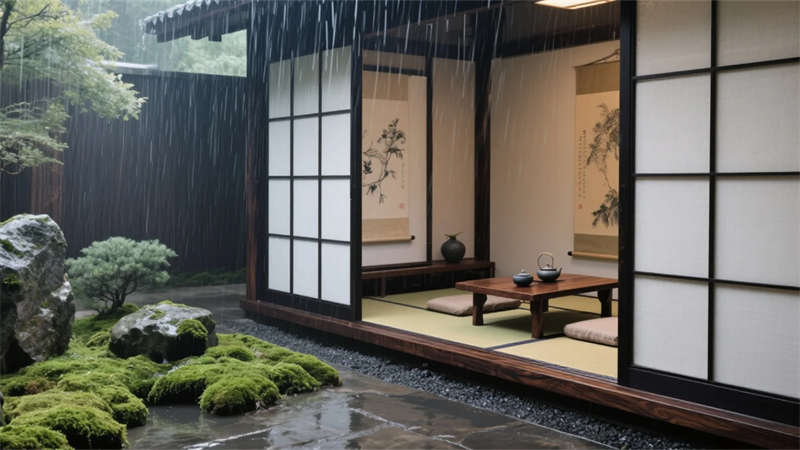 設(shè)計深諳留白哲學,麻質(zhì)織物、陶藝器皿與胡桃木家具,以觸覺溫度軟化冷冽材質(zhì)。浴室如天然巖洞,玉石板透光似月暈;書閣古籍與當代陶器并置,時空在翻頁間交融。庭院借景造境,雨簾青苔應和自然呼吸,無邊水池倒映天光云影,火爐星夜下燃起歸巢暖意。