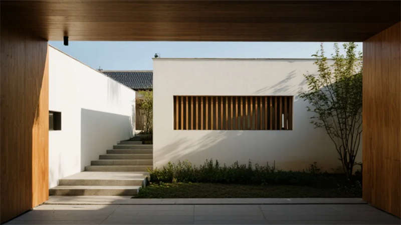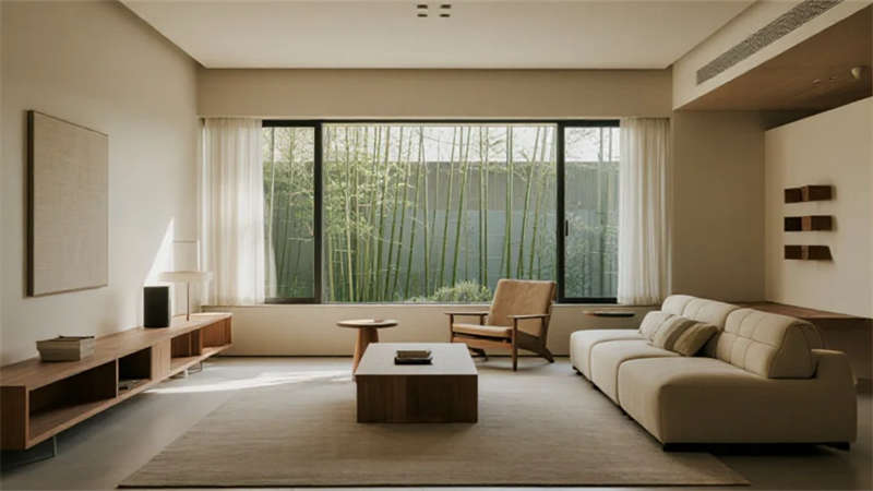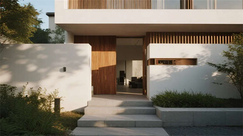 該設(shè)計(jì)以現(xiàn)代簡(jiǎn)約語(yǔ)言重構(gòu)居住本質(zhì),將自然光影作為空間敘事的主角。建筑外觀采用純凈的幾何體塊組合,原木格柵與純白墻面對(duì)話,形成克制而溫暖的初印象。室內(nèi)摒棄冗余裝飾,通過(guò)微水泥的質(zhì)樸肌理、實(shí)木的溫潤(rùn)觸感以及亞麻織物的呼吸感,構(gòu)建出具有生命力的簡(jiǎn)約美學(xué)。