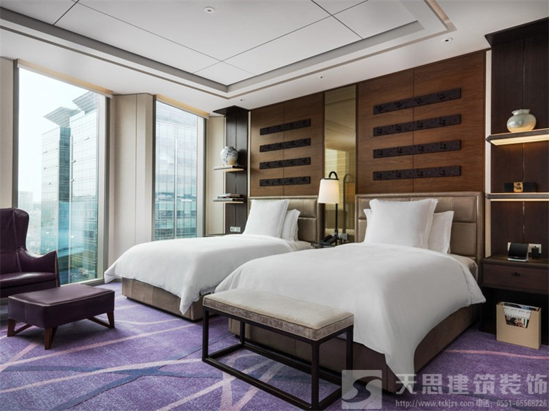客房開間、進深:這次調(diào)研的8家五星級酒店的標準間尺寸除上海四季酒店外都不超過4米X8米,甚至還有3.6米X7.5米的小尺寸(如東方君悅大酒店).但是從感面覺得作為五星級酒店4.2米X8米的尺寸是比較舒適的尺寸,也有利于地下車位的布置.