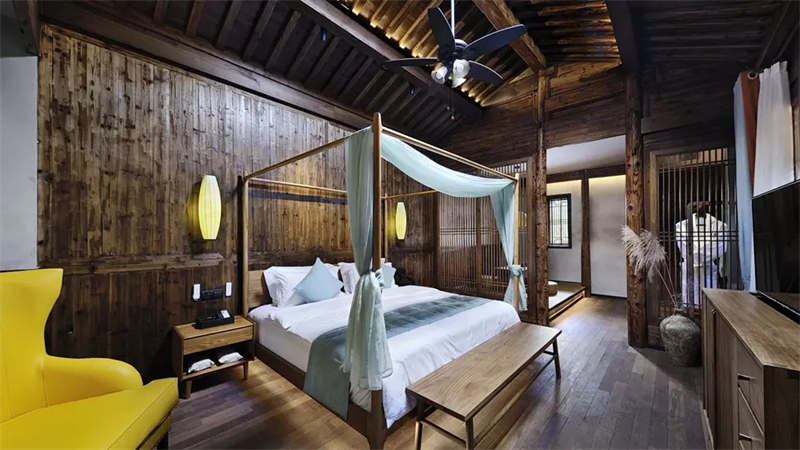 安徽黃山民宿設(shè)計(jì)在整體空間的把控上,色彩、架構(gòu)、家具陳設(shè)力求統(tǒng)一渾然,木飾配合精選的現(xiàn)代裝飾主義陳設(shè)系統(tǒng),分別以新中式、復(fù)古,北歐等風(fēng)格為基調(diào),搭配簡(jiǎn)約現(xiàn)代的空間來(lái)表現(xiàn),終形成了既大相徑庭又和諧統(tǒng)一的客房裝修方案,并為業(yè)主創(chuàng)造了良好的經(jīng)營(yíng)成果。